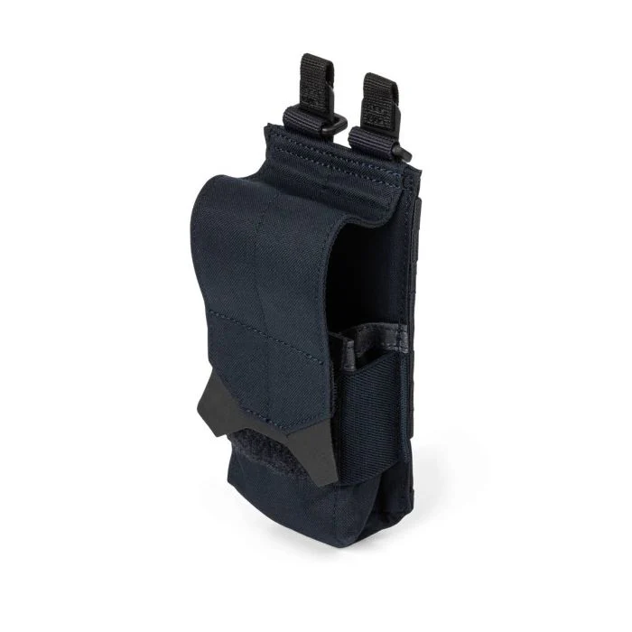 The 5.11 Flex Flash Bang Pouch fits standard size flash bang grenades and has a cover flap with extra-wide hook and loop closure.